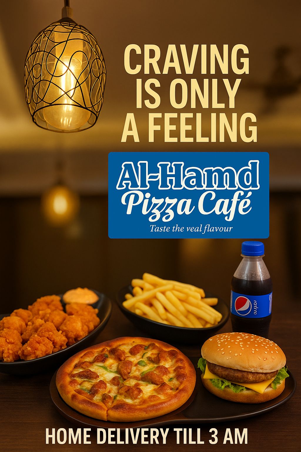 Thank you for choosing Al-Hamd Pizza Café. Come hungry. Leave happy. Because when flavour meets comfort, memorable meals happen.